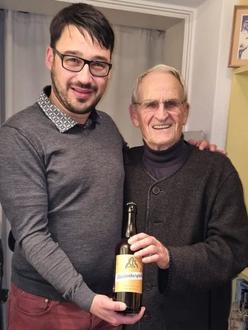 Mit einem Hallenburgbier und einer kleinen Auswahl an heimischer Wurst überraschten Bürgermeister Markus Böttcher und seine Frau Manuela den Steinbach-Hallenberger Ehrenbürger und ehemaligen Skisprung-Olympiasieger Dr. Helmut Recknagel Mitte Januar während ihres Aufenthaltes in Berlin.