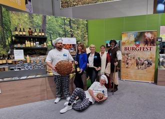 Mit dabei waren auch die Steinbach-Hallenberger Bäcker Daniel und Thomas Marr, die gemeinsam mit Burgvogt Stephan Herwig kulinarische Köstlichkeiten und touristische Ziele unserer Stadt präsentierten.