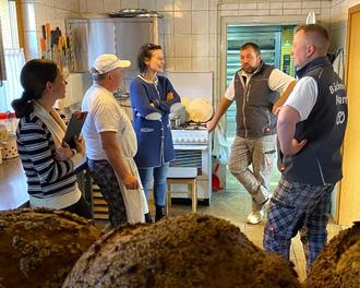 Am Dienstag, den 20. Januar, besuchten Landrätin Peggy Greiser, Bürgermeister Markus Böttcher und Kathleen Straßenmeyer von der Wirtschaftsförderung die traditionsreiche Bäckerei und Konditorei Marr in Steinbach-Hallenberg. In dem Familienbetrieb wird bis heute handwerklich gearbeitet, etwa bei der Zubereitung von Kuchenfüllungen oder beim Kochen des Mohns im Emailletopf.