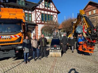 Bürgermeister Markus Böttcher hatte kürzlich die Ortsteilbürgermeister auf den Rathausvorplatz eingeladen, um Ihnen die neuen Fahrzeuge zu präsentieren. Auch wenn die neue Technik nicht billig war, so war und ist gerade auch den Ortsteilbürgermeistern die Notwendigkeit der Neuanschaffungen und die Vereinheitlichung der Bauhoftechnik bewusst. Schließlich soll der verbesserte Fuhr- und Maschinenpark zielgerichtet im gesamten Stadtgebiet eingesetzt werden. Die neue Technik erleichtere nicht nur die Arbeit, sondern auch die hohen Reparaturkosten für deren Vorgängerfahrzeugen sollen zukünftig deutlich geringer ausfallen.