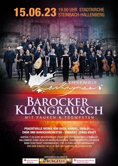 Am 15. Juni findet in der Stadtkirche Steinbach-Hallenberg ein besonderes Konzert statt. „Barocker Klangrausch“ - ist der perfekte musikalische Auftakt am Vorabend des 12. Burgfestes. Das Ensemble „Lachrymae“ unter der Leitung von Jonas Kraft vereint junge Musikerinnen und Musiker, die als Kammerchor und Barockorchester auf historischem Instrumentarium musizieren und Werke der Alten und Neuen Musik erlebbar machen. So werden unter anderem Travers- und Blockflöten, Naturtrompeten, Cembalo und Theorbe in der Steinbach-Hallenberger Stadtkirche erklingen. Ein besonderes Anliegen des Ensembles ist es, neben dem erfahrenen Konzertpublikum auch junge Menschen anzusprechen, die bisher noch wenig Erfahrung mit klassischer Musik machen konnten. Mit „Barocker Klangrausch“ bringt „Lachrymae“ ein speziell für das 12. Burgfest in Steinbach-Hallenberg zusammengestelltes festliches Programm mit prachtvollen Werken von Bach, Händel, Lulli, Vivaldi und vielen anderen Komponisten zu Gehör. Neben bekannten Werken wie „Tönet ihr Pauken“ von Bach und „Feuerwerksmusik“ von Händel werden auch neue und unbekanntere Stücke unter anderem von Rosenmüller, Lully und Rameau aufgeführt. „Es wird ein Fest“, verspricht Dirigent Jonas Kraft.