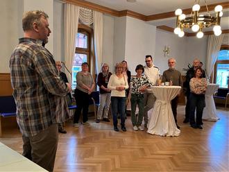 Auch Burgvogt Stephan Herwig sowie Hobbymalerin Christine Wagner weilten unter den Gästen zur Vernissage und machten rege von der Gelegenheit Gebrauch, um mit dem Künstler ins Gespräch zu kommen und verschiedene Techniken zur Gestaltung zu besprechen. „Es war wirklich eine sehr kurzweilige und unterhaltsame Veranstaltung“, resümierte Bürgermeister Markus Böttcher.