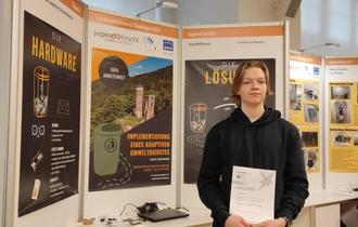 Sein Projekt wurde dort im Bereich Arbeitswelt mit einem zweiten Platz sowie zwei Sonderpreisen prämiert. „Der schönste Preis ist ein einwöchiges Studienseminar im September, in einem der größten naturwissenschaftlichen Museen der Welt, in München“, freute sich Jerry Hoffmann. Natürlich werde er das Projekt weiterverfolgen. Als nächstes müsse in der Praxis getestet werden. Hier ist ein Pilotprojekt in Zusammenarbeit mit der Stadt Steinbach-Hallenberg geplant. „Es gibt noch viel zu klären“, betonte der 10.Klässler. Wie oft die Behälter angefunkt werden, wie lange der Akku tatsächlich unter verschiedenen Witterungsbedingungen hält und wie er getauscht werden soll. Aber auch wie teuer die Anschaffung und die laufenden Kosten für die Stadt wären müsse noch genau berechnet werden. Dem widmet sich Jerry Hoffmann nun in der nächsten Projektphase. Als Fachbetreuer hierfür wird ihm Stephan Schneider, IT-Experten in der Steinbach-Hallenberger Stadtverwaltung, zur Seite stehen und die praktische Erprobung in Zusammenarbeit mit dem städtischen Bauhof begleiten.