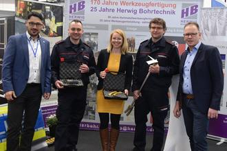 Am kommenden Wochenende feiert die Freiwillige Feuerwehr Steinbach-Hallenberg ihr 100-jähriges Bestehen. Nicht nur die Feuerwehrautos, Uniformen und Sicherheitsausrüstungen, sondern auch die technische Ausstattung der Floriansjünger hat sich in der langen Geschichte der Steinbach-Hallenberger Wehr stets verändert. Gerade in jüngster Zeit werden immer mehr technische Geräte benötigt, um für den Ernstfall trainieren zu können und dann, wenn es nötig ist bestmöglich ausgerüstet zu sein. Die Kosten für notwendige Feuerwehrtechnik und Ausstattung steigen seit vielen Jahren und für die Gemeinden und Städte ist dies ein sehr großer Posten. Umso mehr freuten sich Stadtbrandmeister Vincent Wicht und Bürgermeister Markus Böttcher über eine großzügige Spende der Firma Herwig Bohrtechnik Schmalkalden GmbH. Anlässlich des 100jährigen Feuerwehrjubiläums spendete Firmenchef Toralf Herwig der Steinbach-Hallenberger Feuerwehr 5 Halligan Tools (modernes Brech- und Hebelwerkzeug), 1 Paar Messereinsätze für die vorhandene Rettungsschere und 2 Glasscheren Glas-Ex-Turbo zum Schneiden von Verbundsicherheitsglas. Die Spende hat ein Gesamtvolumen von über 2.000 Euro. Freudestrahlend nahmen Bürgermeister Markus Böttcher und Stadtbrandmeister Vincent Wicht die Geschenke verbunden mit einem großen Dank an Toralf Herwig und sein Team anlässlich der Gewerbeausstellung in Empfang.