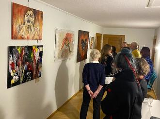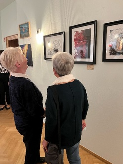 Zahlreiche interessierte Gäste schauten sich sogleich die Bilder und Exponate an und nutzten die Gelegenheit, um mit den Künstlerinnen und Künstlern ins Gespräch zu kommen.