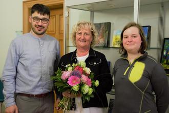 Es folgte nach der Wende die Übernahme in die Gemeindeverwaltung und später in die VG Haselgrund bis hin zum Umzug in das Steinbach-Hallenberger Rathaus, wo sie im Sozialamt tätig war. „Ich habe unter sieben verschiedenen Bürgermeistern gearbeitet und alle Ämter der Verwaltung durchlaufen“, erinnert sich die Viernauerin. „Es ist erstaunlich, wie viele Bereiche und Facetten ein Arbeitsleben haben kann“, sagte Bürgermeister Markus Böttcher erstaunt. Vor allem das Gespür für den Einzelnen habe die Arbeit von Gabi Ballnus ausgezeichnet und auch das über die vielen Berufsjahre aufgebaute Netzwerk an Kontakten sei Gold wert. „Ich habe immer gerne gearbeitet, gute Kolleginnen und Kollegen gehabt und nun freue ich mich auf den Ruhestand“, sagte Gabi Ballnus zum Abschied. Auch wenn ein Comeback im Goldschmiedehandwerk auszuschließen sei, könne sie sich durchaus vorstellen zur Seniorenweihnachtsfeier oder wenn Not an Mann ist von Zeit zu Zeit mit zuzugreifen. Doch der kommende Sommer sei erstmal ganz für Sie und ihren Ehemann reserviert und darauf freue sie sich sehr.