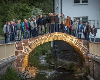 In Unterschönau lebt Geschichte - Hunderte Besucher kamen zur feierlichen Einweihung der neuen Info-Stele an die Hohe Brücke. Bei sommerlicher Stimmung und begleitet von festlichem Chorgesang des Männergesangsvereins 1868 Unterschönau wurde das Wahrzeichen von Unterschönau und historische Kulturdenkmal aus napoleonischer Zeit in einem besonderen Rahmen gewürdigt.
