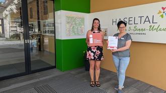 (v.l.n.r.) Prüfung bestanden: Janine Holz und Anja Christ von der Touristinfo mit dem Qualitätssiegel.