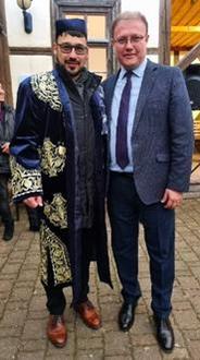 Als Ausdruck der guten Partnerschaft überreichte Stiftungschef Sattarov Odiljon Bürgermeister Markus Böttcher als Gastgeschenk das traditionelle Herrenfeiertagskostüm Chapan, zusammen mit dazugehörigem Schal und der Kopfbedeckung Tyubeteika.
