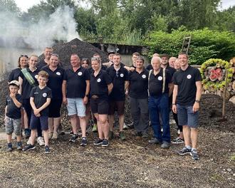 Der Meiler brennt! Die Mitglieder des Meilervereins freuen sich über ein gelungenes 35. Meilerfest. Auch der Meiler hat in diesem Jahr eine gute Ausbeute an Holzkohle eingebracht.
