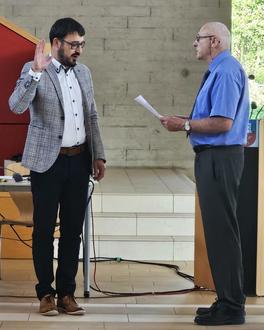 Bevor er dem Bürgermeister die Eidesformel abnahm, lobte er ihn als einen „engagierten Bürger und leidenschaftlichen Kommunalpolitiker“.