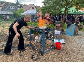 Laute Hammerschläge in hellen und dumpfen Klangwechseln, ein unnachahmlicher Kohleduft und 36 lodernde Schmiedefeuer. Das 7. Internationale Schmiedetreffen auf dem Gelände des Metallhandwerksmuseums sowie einem Teil der Bismarckstraße hatte am Pfingstwochenende wieder einiges zu bieten. Und mehrere Hundert Besucher aus nah und fern nahmen das außergewöhnliche Angebot dankend an und belohnten damit die Organisatoren um Museumsleiterin Dr. Tanja König, Fördervereinsvorsitzender Andrea König sowie das gesamte ehrenamtlichen Helferteam.