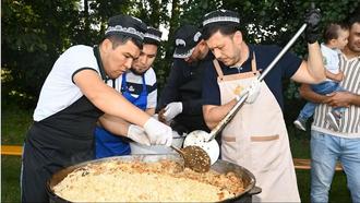 … und mit kulinarischen Höchstleistungen beim Plov-Kochen am Kazan.