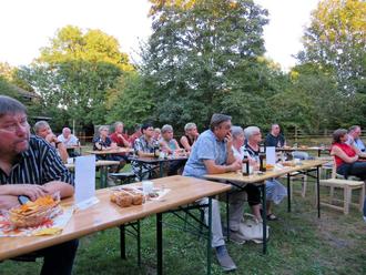 Mehr als 55 Personen haben sich für diese Veranstaltung interessiert und besuchten uns im Heimatverein. Da wir ja wunderbares Spätsommerwetter hatten, fand die Lesung auf der Wiese vor dem Heimatverein statt. Kurz vor 19.00 Uhr waren alle Plätze restlos besetzt. Und um alles auch zünftig zu gestalten, gab es natürlich Thüringer Bartwurst und Thüringer Biere, aber auch Knabbereien, Wein und alkoholfreie Getränke. Alle Besucher warteten mit Spannung auf die Ausführungen von Mirko Krüger und lauschten gespannt seinem Vortrag. Für fast alle gab es vieles völlig Neues und Interessantes zu erfahren. So zum Beispiel, das der älteste Mensch Europas ein Thüringer war und in Bilzingsleben lebte, das älteste Dorf Deutschlands vor 7000 Jahren bei Gispersleben stand, dass die Thüringer Pferde schon bei den Römern beliebt und begehrt waren, das es einmal ein Thüringer Königreich gab, dessen Königin ihrem Mann den Tisch nur halb decken lies um ihn zu einem Krieg zu provozieren, dass das älteste Reinheitsgebot für Bier 1433 nicht in Bayern oder Weißensee entstand, sondern in Weimar niedergeschrieben wurde, das laut Legende Martin Luther kein Tintenfass nach dem Teufel geworfen hat sondern der Teufel nach ihm und das die Beziehung zwischen Goethe und Schiller in Wahrheit nicht unbedingt freundschaftlich war und viele weitere Geschichten und Historien. Das ganz mit einer frischen Prise Humor gewürzt hat den Besuchern und auch dem Vortragenden Spaß und Freude gemacht. Es hat allen gefallen und es wurde auch geplant, so eine Veranstaltung auf jeden Fall möglichst bald wieder zu organisieren.