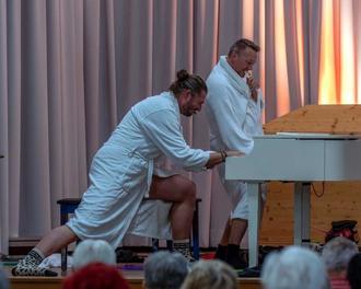 Es war ein sehr kurzweiliger Nachmittag mit einem Mix aus Musik, Comedy und Akrobatik. Denn zu Walzerklängen konnte das Tanzbein geschwungen werden, das Publikum durfte internationale Filmmusik-Klassiker erraten und als eine Hommage an Udo Jürgens wurden seine bekanntesten Hits gespielt ... natürlich standesgemäß im weißen Bademantel.