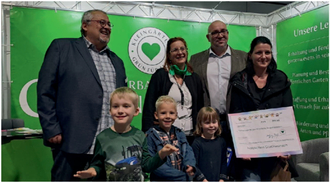 Die Freude war groß, als die Kinder auf der Messe empfangen wurden und den 1. Preis im Wert von 200 Euro von Frau Schütze-Spöhrer entgegennehmen durften. Auch der Bürgermeister der Gemeinde Gangloffsömmern Sven Tschapeller ließ es sich nicht nehmen, bei der Feierlichkeit dabei zu sein und freute sich mit den Kindern über den Gewinn.
