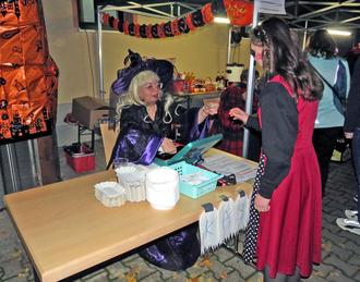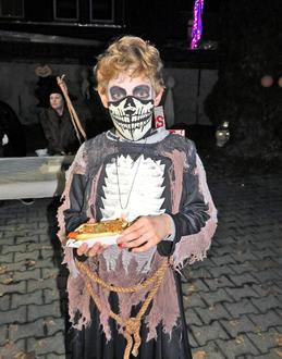 Wichtig war natürlich das Essen und Trinken, Spuken macht ja ziemlich Hunger. Es gab eine ordentliche Auswahl teuflischer Speisen wie „Gehackte Finger in Blutsosse“ (Currywurst), „Frittierte Teufelslocken“ (Pommes), „Eingeweidesuppe“ (Soljanka) oder „Abgeschnittene Finger im Sarg“ (Hot Dogs). Vielen Dank an Caro Sandmann sowie an Gerlinde und Franziska Läer und Jana Schulz für die viele Mühe, die sie wieder an den Tag gelegt haben, um die kleinen Geister zu sättigen.