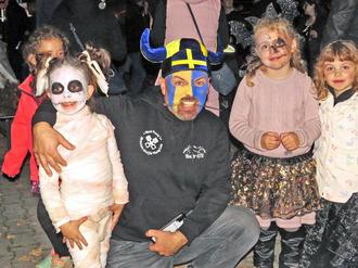 Oberhexe Heike Schulze machte dann mit den Kindern einen kleinen Umzug im Bereich des Bahnhofes. Inzwischen steppte zur Disko im Versammlungsraum der Bär. Als die Gruppe zurück kam, hatten natürlich alle wieder großen Hunger. Die Begleitmumien konnten sich in der Zwischenzeit auch in jeder Beziehung stärken.