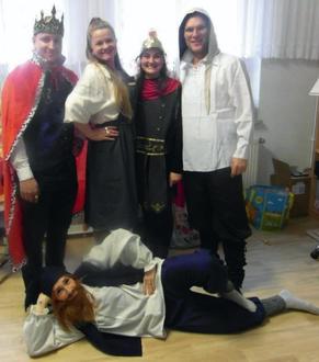 Am Tag der Aufführung war die Aufregung groß und als sich der Vorhang öffnete, freute sich das eine oder andere Kind, seine Mutti oder seinen Vati zu entdecken. An dem tosenden Applaus konnte man erkennen, dass die Eltern mit ihrer fantasievollen und witzigen Interpretation des Märchenklassikers bei allen Zuschauern wieder gut angekommen sind. Als kleines Dankeschön bekamen unsere Märchendarsteller und Frau Wolf, die die Eltern bei ihren Proben unterstützt hat, von den Kindern unseren Sonnenhof-Orden überreicht.