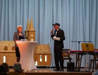 Das fanden auch Gisela Brand und ihr musikalischer Begleiter Wolfgang Wollschläger, die solche Veranstaltungsorte sehr schätzen. Das Programm der beiden „Gemeinsam gegen den Irrsinn des Lebens" war super witzig, denn mit scharfem Witz und spitzer Zunge trafen sie absolut den Zeitgeist.