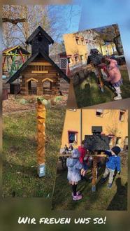 Mit viel Liebe zum Detail gefertigt, bereichert das neue Vogelhaus nun den Außenbereich des Kindergartens. Die Kinder können heimische Vögel aus nächster Nähe beobachten und dabei spielerisch mehr über Natur, Tiere und Umwelt lernen. Das Vogelhaus bietet nicht nur Schutz für unsere gefiederten Freunde, sondern wird auch ein wertvoller Bestandteil der pädagogischen Arbeit im Bereich Naturerfahrung und Umweltbildung sein.