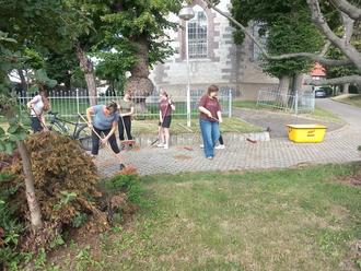 Am 04.07.2023 fand in unseren Mitgliedsgemeinden - einer langjährigen Tradition folgend - der Schüler-Freiwilligen-Tag der Regelschule Straußfurt statt. 169 Kinder und Jugendliche schritten mit z. B. Schaufel, Besen, Pinsel oder Heckenschere ausgestattet beherzt zur Tat. Es würden Büsche und Sträucher verschnitten, Rasen gemäht, Straßen und Plätze gekehrt, Müll eingesammelt und auch so mancher Parkbank/Sitzgelegenheit ein neuer Farbanstrich verpasst.