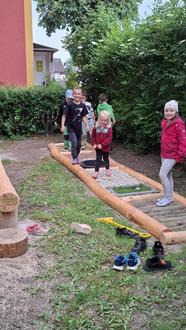 der Sommer hat begonnen und wir genießen mit Wasser, Sand und Eis die gemeinsame Zeit. Die letzten Wochen waren voller Events und Action. Die Vorschulkinder haben im Mai beim ASB viel Interessantes über Brandschutz und erste Hilfe gelernt und während eines Sport- und Kochkurses mit „Sporticus“ einiges über gesunde Ernährung erfahren. Ein Highlight im Mai war unser Zuckertütenfest. Die Kinder präsentierten wieder ein tolles Programm, unsere Feuerwehr brachte die Zuckertüten und begeisterte die Kids mit Rundfahrten durch den Ort. Wir verbrachten alle einen tollen, gemeinsamen Kita-Familientag. In diesem Sinne danke an alle HelferInnen und KuchenbäckerInnen. Spaß erlebten unsere zukünftigen Schulkinder auch während der Übernachtung in der Kita und am darauffolgenden Tag auf der EGA. Auch konnten wir unseren neuen „Trimm-dich-Pfad“ einweihen. In Eigenregie hat Herr Gliem, der Papa von Lara, einen neuen Spielbereich geschaffen. Hier stellen die Kinder ihre Geschicklichkeit beim Balancieren unter Beweis. Auch der Barfußpfad lädt zum Probieren und Fühlen ein. Ganz lieben Dank dafür.