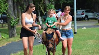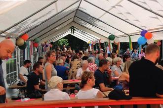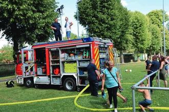Weiter ging der schöne Nachmittag mit Hüpfburg, Rollenrutsche und dem Ponyreiten mit „Molli“, die von Janne Hübner und Helene Wallisch geführt und von unseren Kindern als Dankeschön mit Möhren und Äpfel gefüttert wurde. Beim Kinderschminken herrschte großer Andrang und deshalb noch einmal ein herzliches Dankeschön an Stefani Wolf, Romy Pieper und Patricia Parsche, die die Gesichter unserer Kinder so toll verzaubert haben. Das Wetter meinte es auch besonders gut mit uns und so kamen alle bei fast 30 Grad natürlich auch ganz schön ins Schwitzen. Zum Glück war ein Team unserer Freiwilligen Feuerwehr vor Ort, um mit Wasseraktivitäten für Abkühlung zu sorgen. Bei Musik und guter Laune ließ sich so mancher auch ein kühles Getränk, oder etwas vom Rost schmecken.