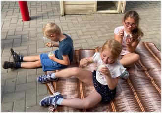 Jeder konnte soooo viel Eis essen, wie er wollte und konnte. Das war vielleicht lecker und cool. Hoffentlich kommt das Auto bald wieder zu uns!