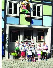 Der Bus von Röse Reisen, gefahren von Ronny Röse, der vielen unserer Kinder bekannt war, stand zur Abfahrt bereit und unsere Reise konnte beginnen. Die gemeinsame Fahrt im kleinen Reisebus gefiel unseren Kindern gut und nach kurzer Zeit waren wir schon an unserem Ziel angekommen. Die Rumpelburg befindet sich direkt im Zentrum der Innenstadt und macht bei jedem Wetter viel Spaß. Unsere Schulanfänger tauchten in eine fantastische Welt ein, in der sie sich über Netzbrücken zu den Klettertürmen hangelten, das geheimnisvolle Baumhaus erkundeten, rasante Rutschpartien unternahmen oder im Sandbereich spielten. In einer riesigen Puppenstube, im Spielhaus, im Schiff, im Jeep, im Tiergehege mit Holztieren und in der Spielstadt gab es viele Möglichkeiten, in die verschiedensten Rollen zu schlüpfen.