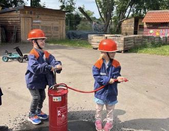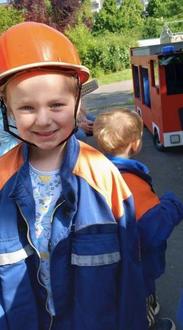 Nach der erfolgreichen Brandschutzübung durften die Kinder in der Feuerwehr Schwerstedt alles anschauen, Helme ausprobieren und sogar mit dem Schlauch spritzen, am meisten interessierte natürlich das Feuerwehrauto. Die Begeisterung war riesig - und der Respekt vor den Aufgaben der Feuerwehrleute wuchs sichtlich.