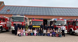 Am 09.08.2025 war es für zahlreiche ABC-Schützen endlich soweit, denn sie kamen in die Schule. Traditionell holten hierfür die Kameraden der Feuerwehren, aus dem Einzugsgebiet der Grundschule Straußfurt, die angehenden Schulkinder von zu Hause ab und bringen sie in das Gerätehaus in Straußfurt. Hier bekamen die Mädchen und Jungen unsere Zuckertüten vom Gemeindebrandmeister Michael Pusch und Vereinsvorsitzenden des Förderkreises der Jugendfeuerwehr Straußfurt Jan Kostka, überreicht.