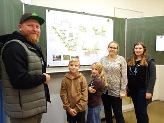 Nicht unerwähnt bleiben soll in diesem Zusammenhang auch die Übergabe der Planungsunterlagen für das Projekt „Zehn grüne Schulhöfe“, welche am 13.11.2023 durch die Firma Merkel stattfand. Nach einer kurzweiligen Präsentation unter dem Motto „Erforschen, erleben und entdecken“ hatten die zwei Schülersprecher Gelegenheit, sich die Zeichnung anzusehen und Fragen zur Schulhofgestaltung zu stellen. Besonderen Anklang fanden der Kriechtunnel und das Amphitheater, auf die sich alle schon besonders freuen. Hoffen wir, dass wir in der nächsten Phase als Umsetzungsschule ausgewählt werden, um die Projekte auch realisieren zu können.