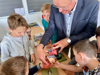 Im Mittelpunkt des Projekts „Herzensangelegenheit“ der Kinder der Grundschule Weitramsdorf stand die Durchführung einer Reihe von gesundheitsfördernden Aktionen zum Thema Herzgesundheit. „Im Zuge des Projekts haben wir uns dem Thema auf vielfältige Weise genähert“, erklärt Dr. Kevin Pike vom Elternbeirat der Hermann-Grosch-Grundschule, der das Projekt organisierte. „Im Rahmen des Bildungskonzepts wurden Unterrichtseinheiten mit speziell konzipierten altersgerechten Lehrmaterialien zum Thema Herzgesundheit angefertigt, zum Beispiel schriftliche und mündliche Aufgaben rund um die Thematik Bewegung, Ernährung und kindgerechte Anatomie in Theorie und Praxis“, ergänzt Dr. Pike. Ein Besuch im Unterricht von zwei waschechten „Herzdoktoren“ - den Coburger Kardiologen Dres. Helmut und Ingrid Keller -, die Herzmodelle und einen Defi dabeihatten, war für die Dritt- und Viertklässler ein absoluter Höhepunkt. In Kooperation mit dem Bayerischen Roten Kreuz wurden zudem Erste-Hilfe-Kurse angeboten und die Kinder der 3. und 4. Klassen zu Junior-Ersthelfern ausgebildet. Zum Abschluss konnte jedes Kind sein persönliches ‚Herzbild‘ malen und viele dieser kleinen Kunstwerke bilden nun eine bunte Kollage, die in der Schule als schöne Erinnerung an das Projekt hängt. Der im Rahmen des Projekts angeschaffte Defibrillator steht den Nutzern des Schulgeländes und auch den Bewohnern des angrenzenden Wohngebietes 24 Stunden am Tag zur Verfügung.