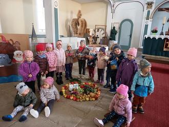 Das Kindergartenjahr ist nun schon ein paar Wochen alt und wir haben doch schon einiges erlebt. Wir haben ein schönes Herbstfest gefeiert und unsere Gaben in die Kirche gebracht. Wir möchten allen Eltern ein großes Dankeschön für die Spenden sagen.