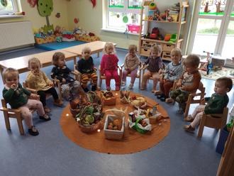 Schon lange Tradition in unserem Kindergarten ist das Herbstfest, das immer mit dem Erntedankfest in der Kirche zusammenfällt. Wir haben einen ganzen Tag dafür organisiert. Los ging es nach alter Tradition mit einem gemeinsamen Frühstück. Wir wollen ja viele heimische Leckereien probieren. Ob der Apfel aus dem Garten genauso schmeckt, wie der aus einem Laden? Vielleicht schmecken unserer selbst mitgebrachten und geernteten Gaben ganz anders?