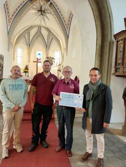 Die Oldtimerfreunde Straufhain e.V. überreichten Pfarrer Schwesig einen symbolischen Scheck in Höhe von 500 € für die Sanierung der Orgel in der Marienkirche in Streufdorf. Noch ist nicht die gesamte Summe für die Sanierung vorhanden. Deshalb freut sich die Kirchgemeinde auch weiterhin über Spenden.