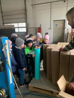 Sven Kral erklärte den Vorschülern, was tagtäglich nebenan passiert, wie die Maschinen arbeiten und was man alles herstellen kann.