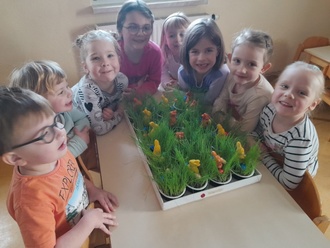 Alle Kinder sind sich einig, nun dauert es nicht mehr lange und der Osterhase kommt im Kindergarten vorbei. Die Schmetterlingsgruppe hat sich in diesem Monat besonders mit den Frühblühern und dem Wachsen der Pflanzen beschäftigt. Selbst gestalteten sie ihren eigenen kleinen Garten und säten Ostergras. Jeden Tag konnten sie nun beobachten, wie sich alles verändert und wie lange das Wachsen dauert. Eine große Überraschung gab es dann, als eines morgens auf einmal der Osterhase einen kleinen Gruß hinterlassen hat.