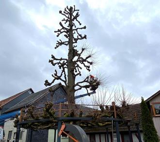 An mehreren Standorten in der Gemeinde wurde im Winter wieder die notwendige Baumpflege an gemeindeeigenen Bäumen vorgenommen, so auch an den Tanzlinden in Steinfeld und Eishausen. Dies ist notwendig, um der Verkehrssicherungspflicht nachzukommen oder, wie im Falle der Tanzlinden, den Denkmalschutzauflagen nachzukommen. Auch Bäume auf privaten Grundstücken unterliegen dieser Verkehrssicherungspflicht. Das heißt, die Eigentümer sind dafür verantwortlich, dass von den Bäumen keine Gefahr für Mensch und Material ausgeht. Falls ein herunterbrechender Ast oder ein umgestürzter Baum Schäden verursacht, sind diese vom Eigentümer zu begleichen.