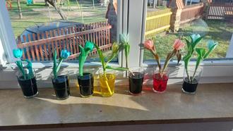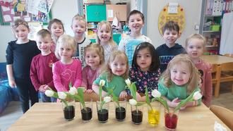 Die Veränderungen in der Natur lassen sich im Frühling besonders gut beobachten. Die Jahreszeit bringt verschiedene Blumen, Farben und Düfte zum Vorschein. Die unterschiedlichen Frühblüher sind im Kindergarten genauer begutachtet worden. Welche Blumen wachsen bei uns auf den Wiesen? Welche Tiere mögen die Blüten besonders gerne? In der Bienengruppe sorgte ein Experiment für viel Aufregung. Auf einmal ist aus einer weißen Tulpe eine blaue geworden! Wie geht das?