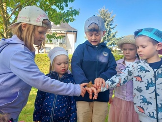 Die Sommerzeit im Kindergarten ist immer eine ereignisreiche und bunte Zeit, in der sich der Alltag meistens draußen abspielt. Kinder zeigen großes Interesse an Insekten, Käfern, Schnecken und Schmetterlingen. Unsere Bienengruppe beschäftigte sich in diesem Monat mit einem besonderen Projekt: „Von der Raupe zum Schmetterling“. Um auch das Heranwachsen von Schmetterlingen erleben zu können, besorgten die Erzieher ein Set für die Schmetterlingsaufzucht. Dieses ermöglichte den Kindern, die Entwicklung von der Raupe bis zum wunderschönen Schmetterling mitzuerleben. Sie lernten die verschiedenen Entwicklungsstadien der Schmetterlinge kennen, speziell des einheimischen Distelfalters. Mittlerweile sind die Distelfalter geschlüpft und konnten in die Freiheit entlassen werden.