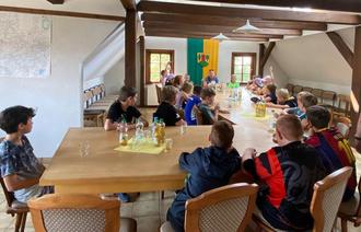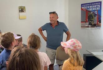 Vor einiger Zeit erhielt Bürgermeister Tino Kempf außergewöhnlichen Besuch. 25 Schüler aus der 3. Klasse der Grundschule Streufdorf kamen ins Rathaus, um sich ein Bild von den Aufgaben eines Bürgermeisters zu machen. Zunächst führte das Gemeindeoberhaupt durch die Räume. „In der Gästeinformation erhalten Besucher Auskünfte zu unseren Sehenswürdigkeiten“, erzählte Herr Kempf den Schülern, „zur Burg Strauf, der Hutelandschaft oder dem Zweiländermuseum.“ Weiter berichtete er über den Kontaktbereichsbeamten (KOBB) der einmal in der Woche Sprechzeit hat und über die Feuerwehr, deren Ortsbrandmeister Sandro Prax ebenfalls ein Büro im Rathaus zur Verfügung hat. Einige der Schüler berichteten stolz, dass sie auch in der Jugendfeuerwehr mitarbeiten. Vor allem die Stressenhäuser Kinder zeigten sich begeistert. Der Bürgermeister äußerte die Hoffnung, dass die Kinder auch später bei der Feuerwehr bleiben, denn es werde immer dringend Nachwuchs gesucht.