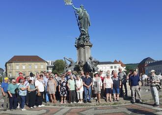 Stadtführer Otto Junker begleitete die historisch interessierten Bürger von Straufhain auf „der Reise durch Würzburg“ und übermittelte sein umfangreiches Wissen über den Aufenthalt des Kronprinzenpaares in Würzburg - die Reisegruppe war begeistert.