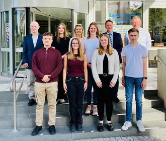 Landrat Robert Sesselmann und der Hauptamtliche Beigeordnete Andreas Groß hießen die neuen Nachwuchskräfte gemeinsam mit Personalamtsleiter Steffen Zinner und den beiden Ausbildungsleiterinnen Josefine Weidenhammer und Carolin Engelbrecht herzlich willkommen und wünschten ihnen einen guten Start in der Kreisverwaltung.