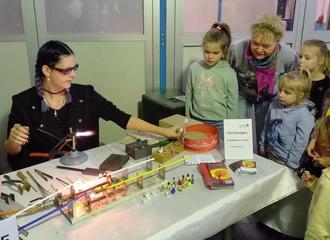 Während der Backzeit besuchte Betreuerin Uschi mit den Kindern das Museum: auch hier wurde ein besonderes Highlight geboten: Eine junge Lauschaer Glasbläserin zeigte, wie sich Glasrohre vor eine Gasflamme - mit dem nötigen Können - in Schwäne, Murmeln oder auch kleine Fläschchen verwandeln.