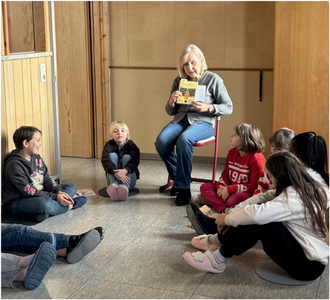 Wie in den vergangenen Jahren besuchte auch Marietta Rößler die Grundschule und las der ersten und zweiten Klasse das bezaubernde Buch „Wir sind nachher wieder da, wir müssen kurz nach Afrika“ vor.