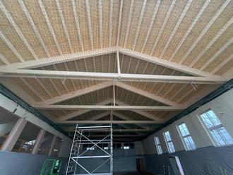 Die riesige Dachfläche machte, Innen- und Außen, aufwendige Holz- Dachdecker- und Zimmererarbeiten notwendig.