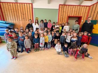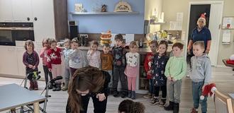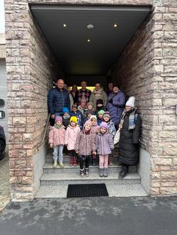 Als großes Dankeschön unsererseits, besuchten die Kinder mit ihren Erzieherinnen die Wohngemeinschaft „Pflege ohne Grenzen“ und überraschten sie mit selbstgebackenen Plätzchen und liebevoll gestaltenten Basteleien. Das mit Instrumenten begleitete Lied „Kling, Glöckchen - Kling“ wurde mit großer Freude den Bewohnern vorgetragen. Auch das Rathaus samt Bürgermeister Peter Ebertsch wurden von den Kindern besucht. Dort wurden ebenfalls zwei einstudierte Lieder zum Besten gegeben.