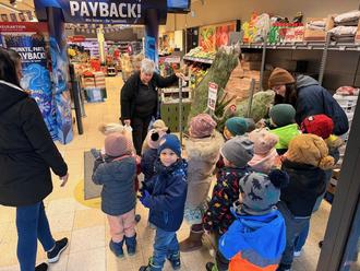 Die Krippenkinder waren währenddessen auch fleißig in der Marktgemeinde unterwegs. So wurde der Bauhof für seine tatkräftige Unterstützung über das ganze Jahr hinaus mit einer Gesangseinlage von unseren Jüngsten überrascht. Auch in der Diska waren die Kinder mit großem Eifer dabei und gaben ebenfalls das Lied „In der Weihnachtsbäckerei“ zum Besten.